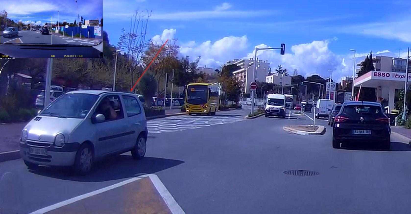 Fou dans un twingo qui utilise la voie de gauche (réservée pour tourner à gauche) afin de doubler une camionnette qui vient de s'arrêter au feu !