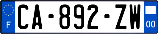 Plaque d'immatriculation CA-892-ZW