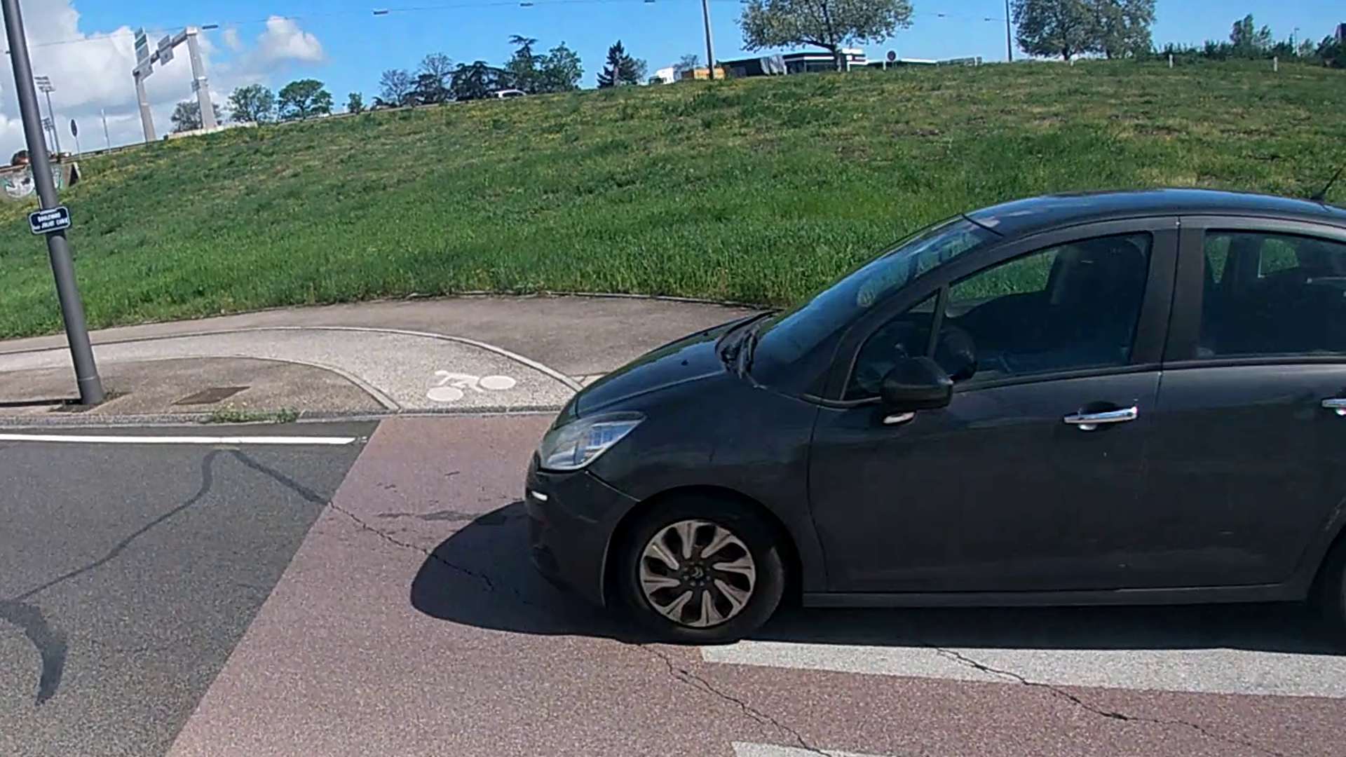 Magnifique refus de priorité. Non seulement ma piste cyclable était prioritaire, mais surtout j'avais commencé à traverser. J'ai eu extrêmement peur.