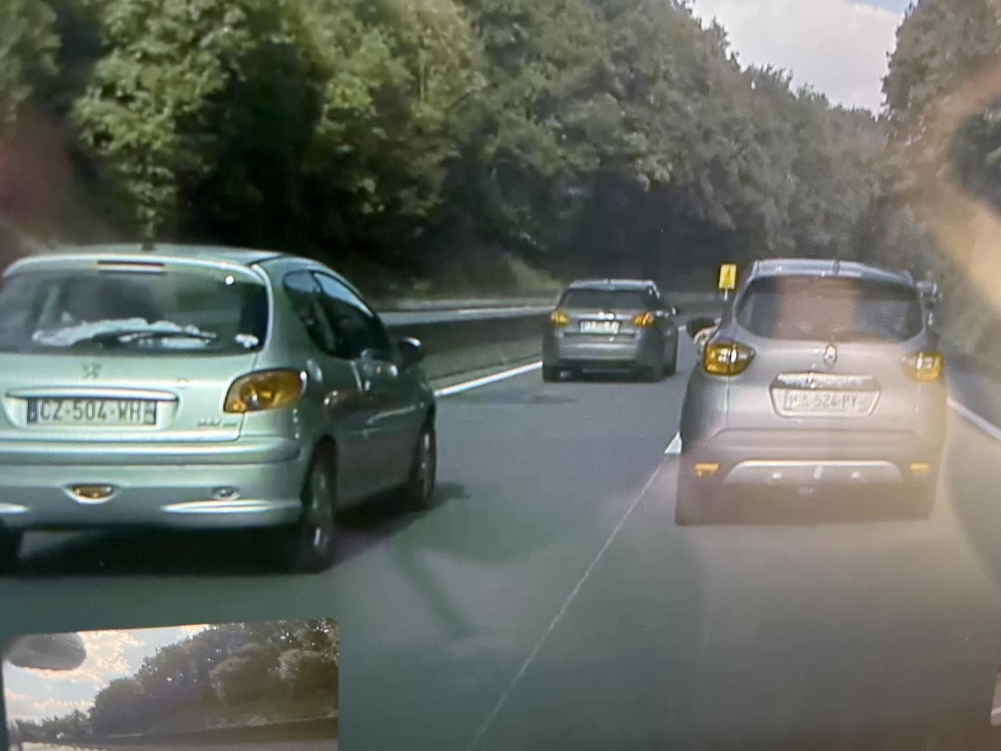 Encore un con qui se sent supérieur, double alors qu’il y a un resserrage à une voie avec le panneau d’interdiction de doubler