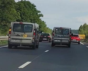 Transport d'enfants à priori non attachés (certains changeaient de places). Excès de vitesse entre 130 et 140 sur une route limité à 110. Aucun respect des distances de sécurités. Dépassement par la droite. S'amusent à se dépasser/faire la course. En résumé des dangers publiques qui s'amusent à mettre la vie de nos enfants en jeux.