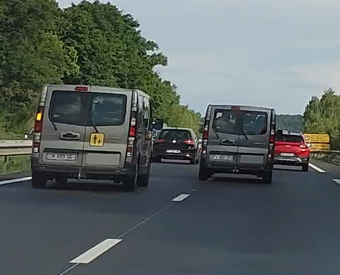 E23/N57 direction Epinal, 25 Juillet 2025 entre 17 et 18H. DN-889-GG et FJ-423-TZ Renault Traffic.