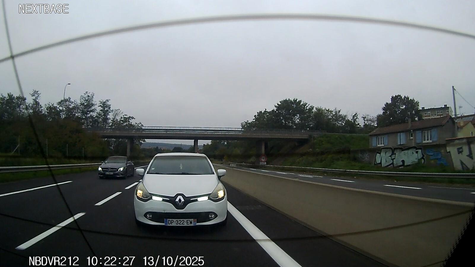 Colle sur autoroute et se rabat tellement tard sur une zone de travaux qu'il gêne le passage des flics qui vont sur un accident. Encore un fini à la pisse.