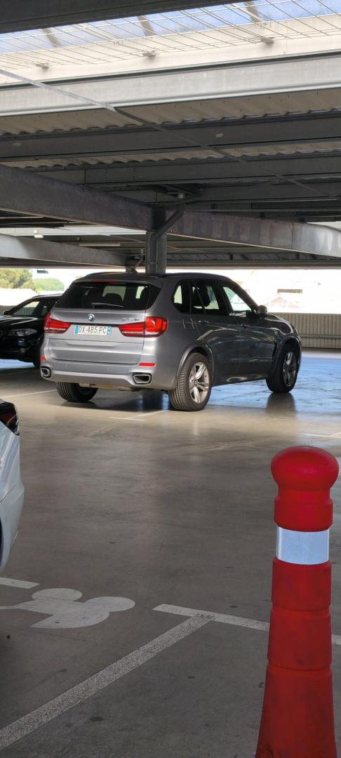 Eh oui ça roule en gros 4x4 BMW mais ça ne sait pas se garer correctement entre 2 lignes alors que s'il voulait être tranquille sur le parking, il y avait de quoi plus loin comme la bleue auquel ça n'aurait gêné personne s'il dépassait sur un côté