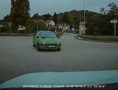 Femme en twingo qui m'a bien coupé la priorité. Encore un freinage d'urgence pour l'éviter. Bouxières Aux Dames (54)