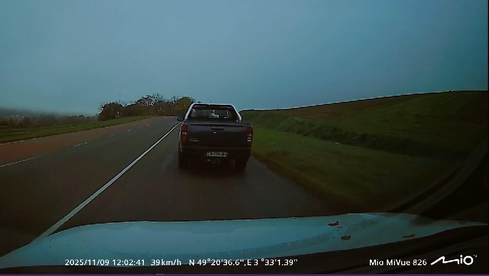 Vieux connard en pickup qui me coupe la priorité sur une route à 80km/h, et reste à 40. Entre Courcelles et Braine (02)