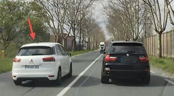 Dépassement sans clignotant, sur Ligne blanche (malgré le camion qui arrive en face) et excès de vitesse.