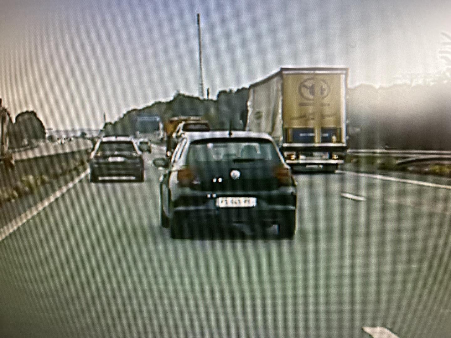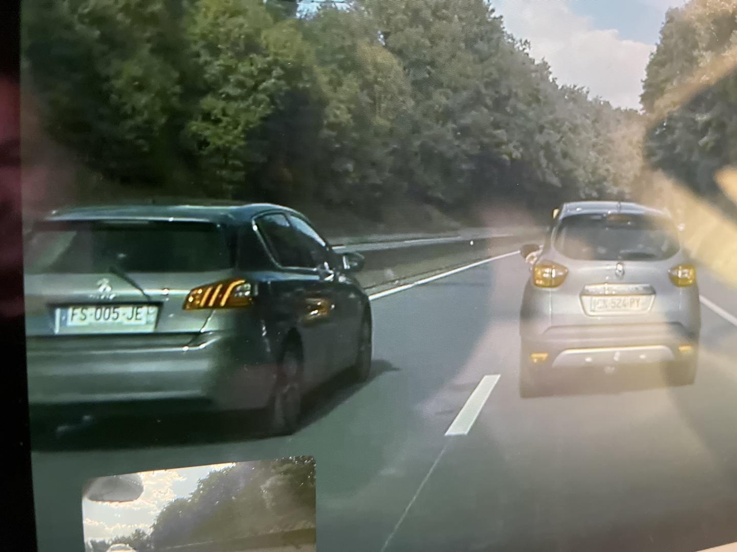 Encore un con qui se sent supérieur, double alors qu’il y a un resserrage à une voie avec le panneau d’interdiction de doubler