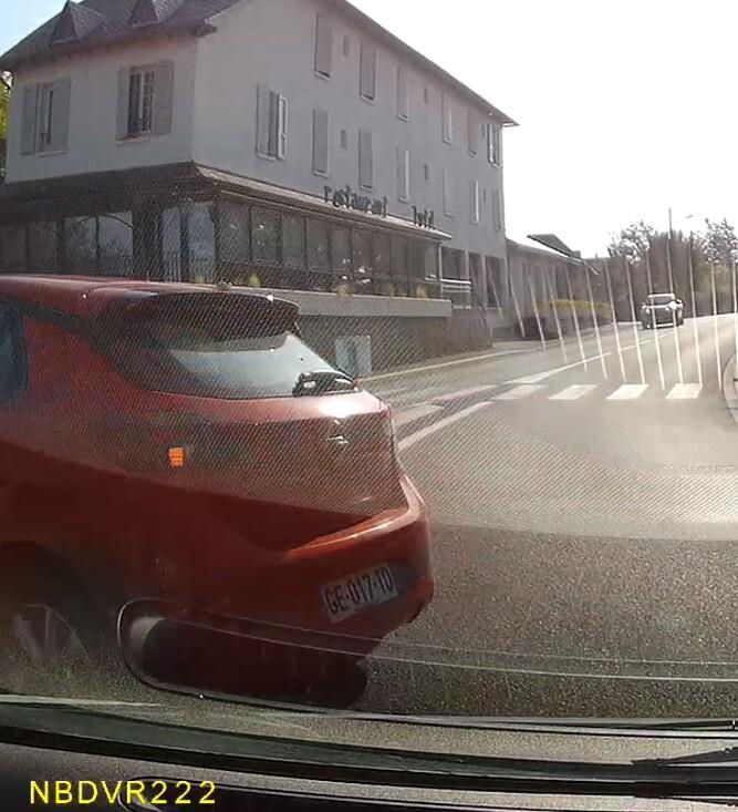 208 blanche qui double sur la ligne blanche sur D612 dans le Tran