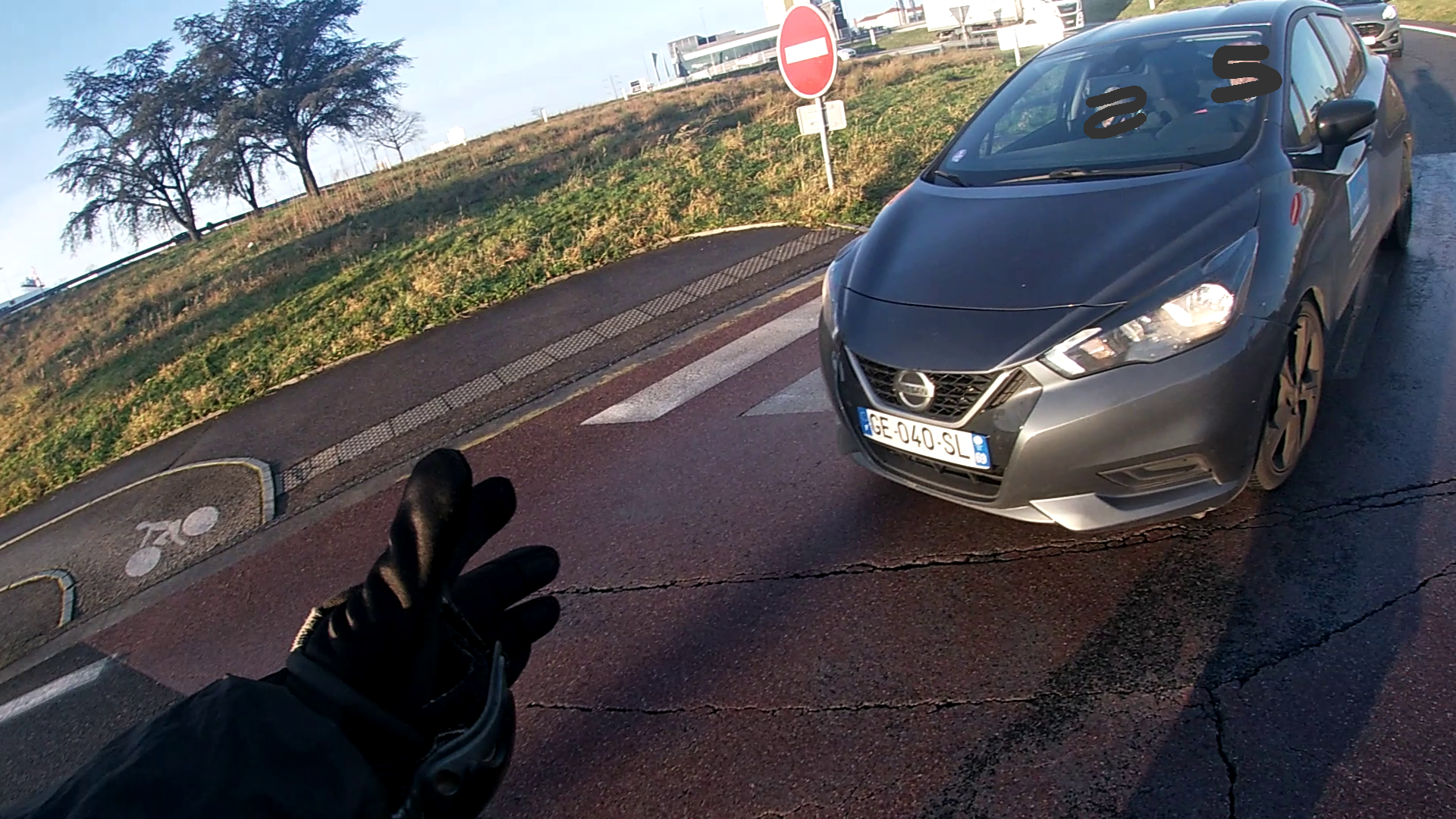 J’ai eu 1seconde pour réagir et braquer à gauche, mon genou a juste frotté contre sa carrosserie. Je m’en sors miraculeusement sans bobo ni casse. Mais une grande frayeur et sentiment d’agression😥.