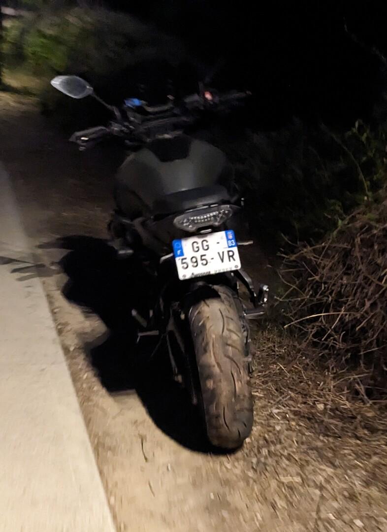 Moto abandonnée sur le bord d'un chemin. Le lendemain, celle-ci était enlevée. Elle a laissée une traînée d'huile sur près de 500 metres