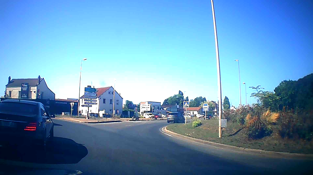 La bagnole étant trop grosse, elle dépasse sur le trottoir qui déjà pas si large