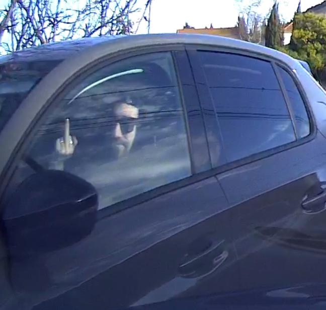 Tant qu'il y aura des gros batards comme lui, accompagné de sa poufiasse. Ne respecte pas la priorité, descend de sa voiture pour en venir aux mains, et sa chienne à côté qui fait des doigts d'honneur. A vomir