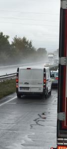 Un abruti roulant avec feu de brouillard arrière par temps de pluie.