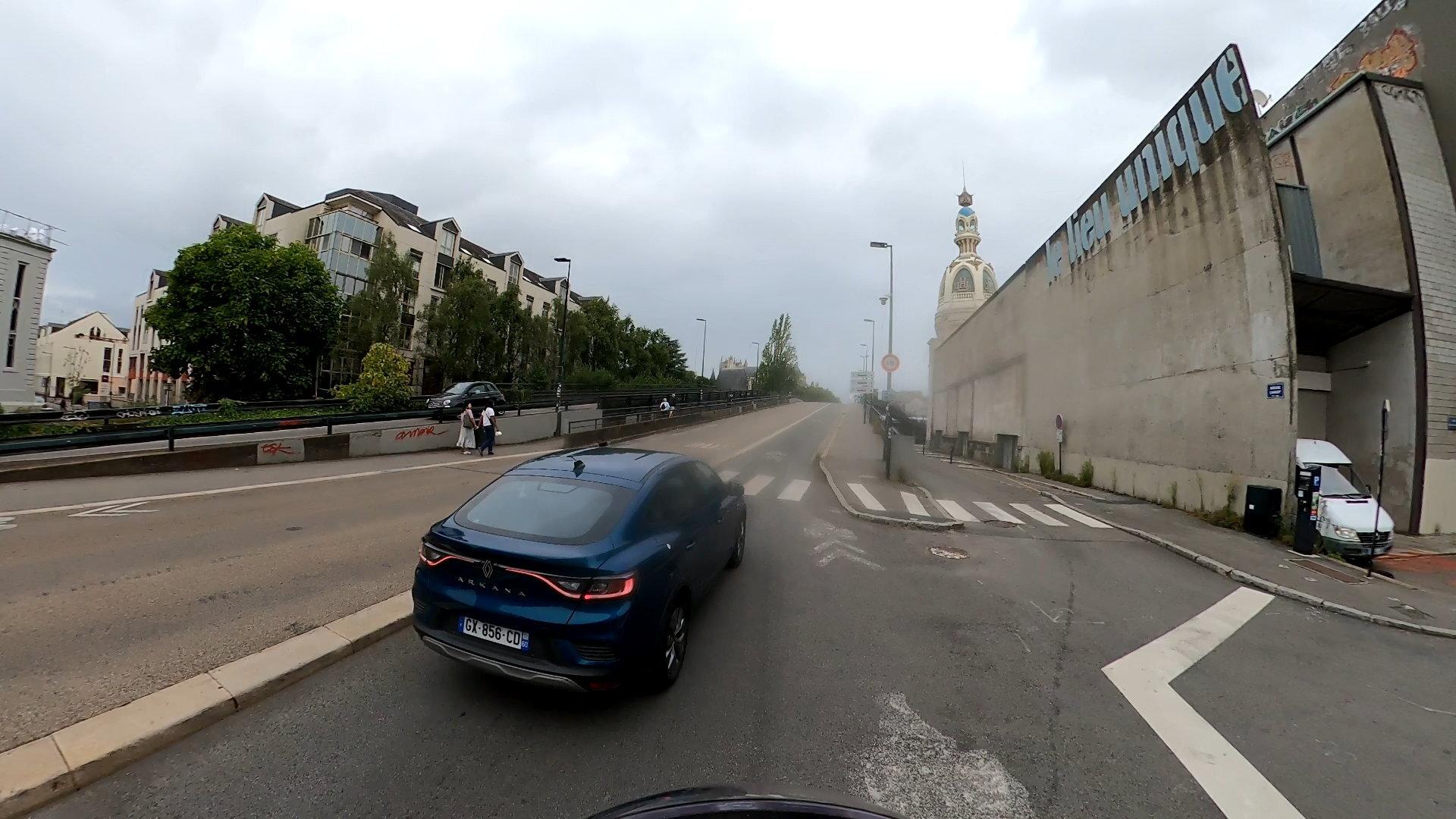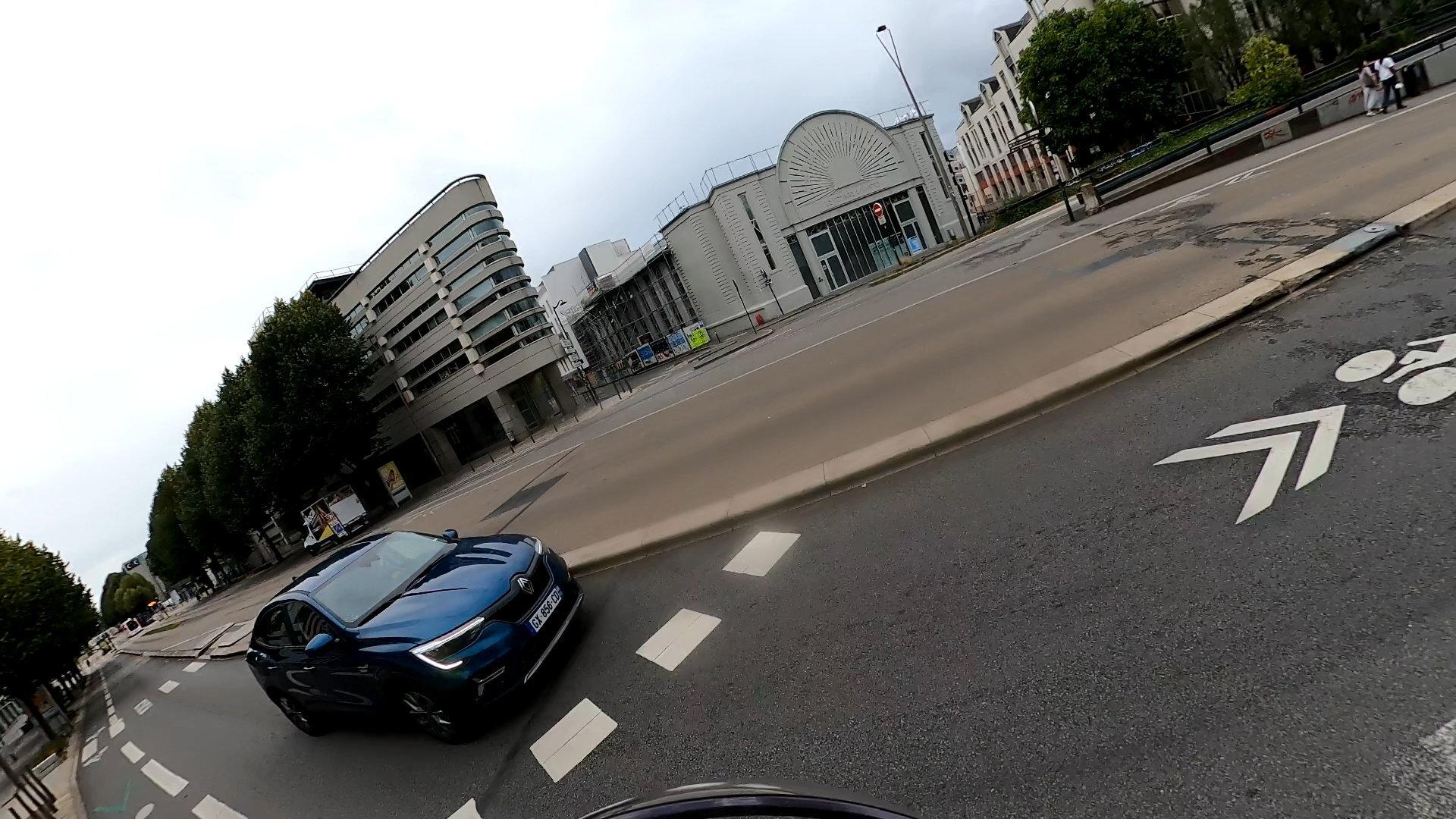 Refus de priorité. Il y a un cédez le passage pour laisser les vélos circulant dans la bande cyclable de passer devant en toute sécurité