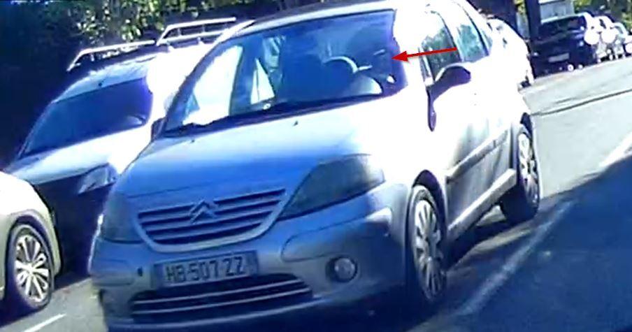 Le véhicule roule vachement sur sa gauche ! Ah bah oui, il est au téléphone. Ah, c'est pas la première fois en plus ! Vivement qu'on applique les sanctions comme dans le sud ouest.