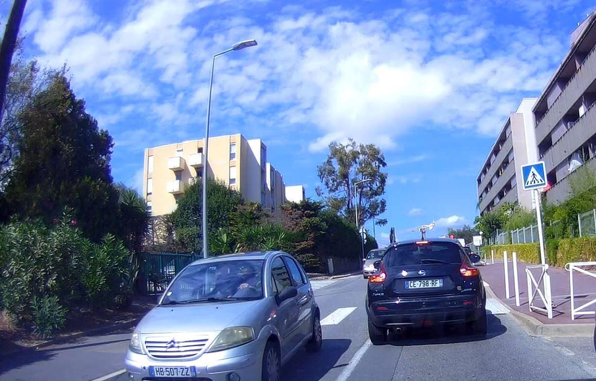 Le véhicule roule vachement sur sa gauche ! Ah bah oui, il est au téléphone. Ah, c'est pas la première fois en plus ! Vivement qu'on applique les sanctions comme dans le sud ouest.