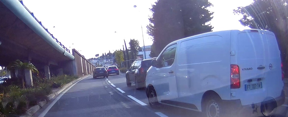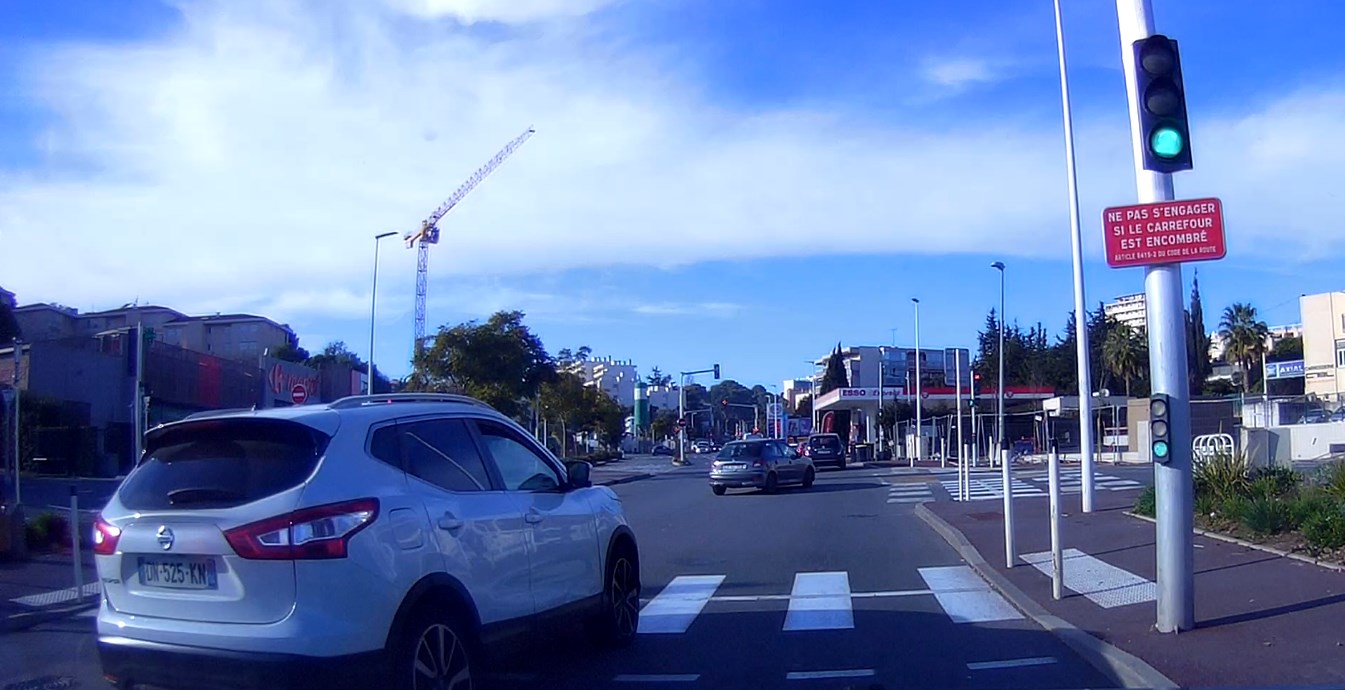 Opel blanche qui utilise la voie (réservée pour tourner à gauche) afin de doubler me doubler pour aller encombrer le carrefour, ce que je me suis interdit de faire en attendant au feu d'autant que le code de la route est rappelé sur un panonceau sur le feu !