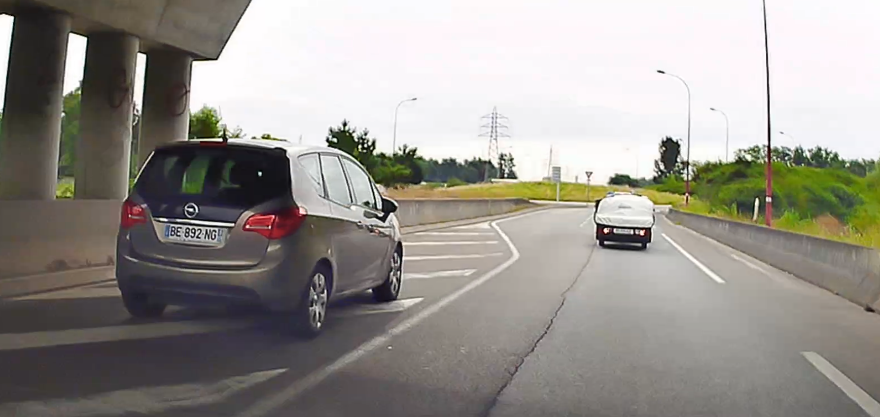 Véhicule dangereux, menace de foncer dans la voiture, ne respecte pas les distances de sécurité. Reste à la hauteur pour se rabattre sur mon véhicule.