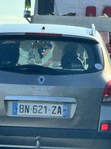 Trafic blanc qui colle au cul et ne met jamais son cligno pour doubler, ni pour sortir du rond point. VU le 17 09 2024 sur la N113 de Castelnaudary à Carcassonne (11)