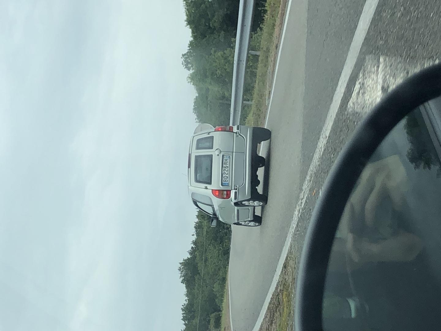 Scénic 3 qui prend des risques inconsidérables en doublant dans un village truffé de priorité à droite, en plus limité à 50km/h...n'oubliez pas que la vie peut changer en quelques mètres !!