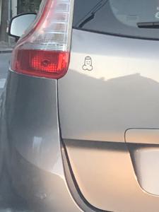 Ce cher Monsieur se gare n'importe comment (en sens inverse, à côté de la bande jaune du trottoir), laisse sa porte grande ouverte (gênant les piétons) et sa radio à fond pendant qu'il se rend à l'épicerie. Vu l'état de sa voiture, je comprends qu'il la laisse comme cela... personne n'aurait envie de lui voler.