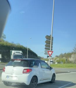 Connard qui ne regarde pas ses retros se rabat sur toi et quand tu le klaxonnes pour faire comprendre que tes la il te passe devant et te pile a la gueule en bon connard qu il est tient