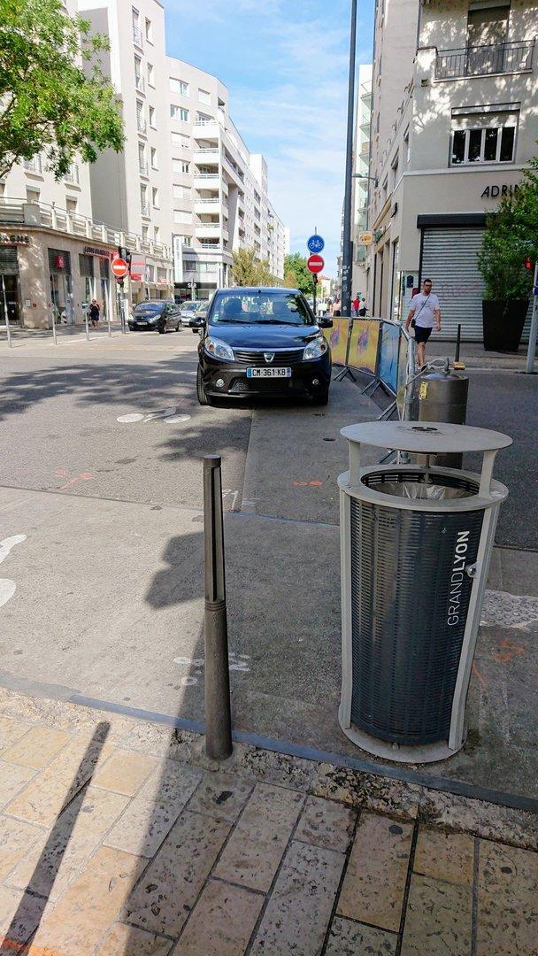 Le propriétaire de cette automobile adore stationner sur les doubles sens cyclables ? Et les cyclistes ? Oh, ils sont forcés de rouler de face sur la voie des voitures.