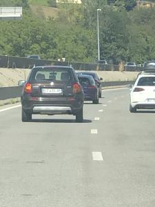 Cette personne colle les personnes Sur l’autoroute. Elle ne respecte pas les distances ! Prête à créer un accident ! Et plus pas contente elle vous fait un doigt d’honneur !