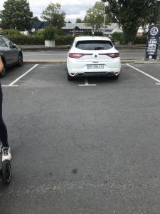 Encore un gros malin qui pour ne pas abimer sa voiture qu’il doit se saigner a payer a credit se permet de prendre 2 places sur le parking de carrefour a touques
