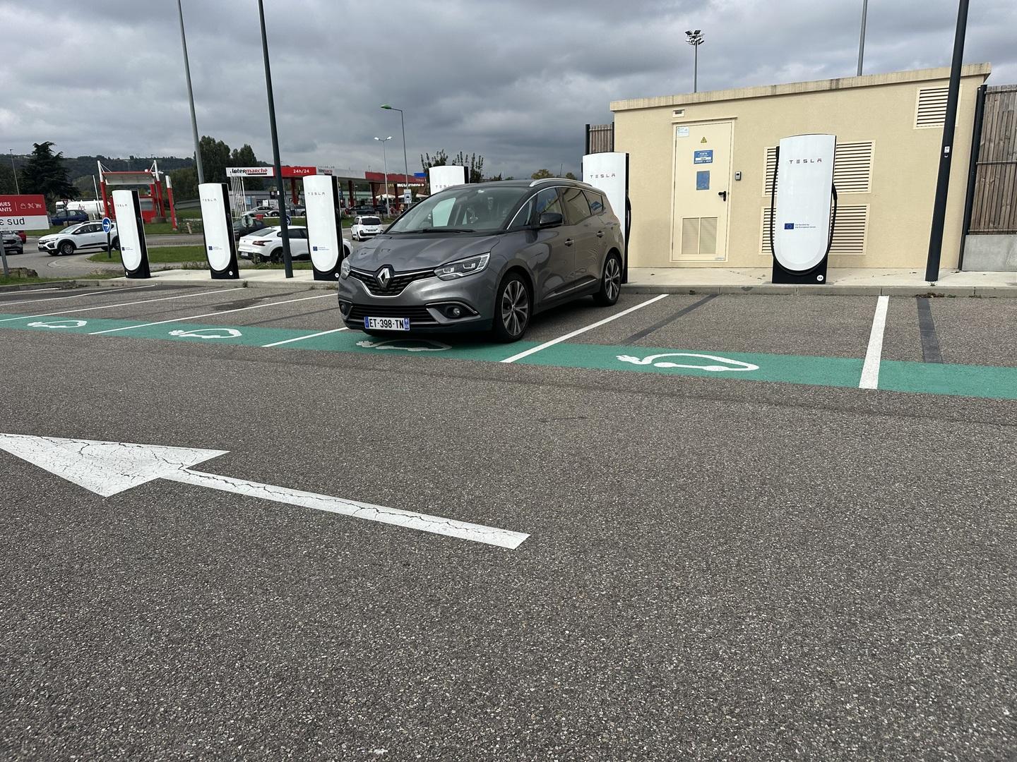 Parking vide mais se gare à des places pour véhicule électrique.