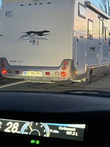 Véhicule-carane ayant un comportement dangereux, colle la voiture de devant, roule en travers de la route et en prime se permet de faire doigt quand des appels de phare sont faits pour signaler son comportement.