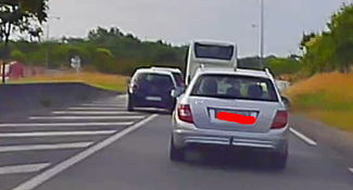 Me double un peu après et même pas un signe ou regard pour s'excuser. Enfin pile en pleine ligne droite pour faire piler le conducteur qui le suit.