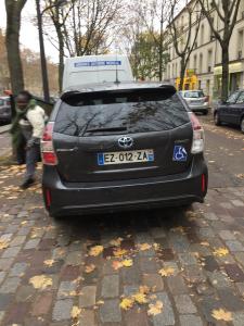 EZ012ZA 75. Garée sur acces entrée ou sortie d une contre allée avenue Daumesnil Paris 12. Macaron « handicapé « sur l arrière de la voiture alors qu elle marche et se déplace très bien. Très violente.