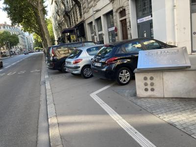 Elles sont trois voitures bloquant le trottoir, collé a l’Hommage à Louis Braille et sur la ligne de guidage pour aveugle… le respect ?