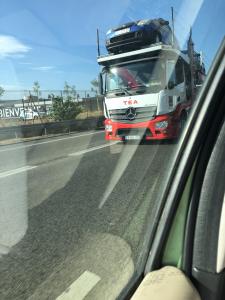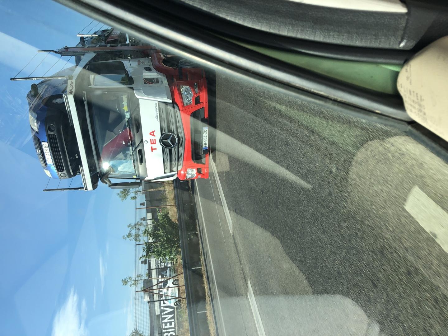 Camion transportant des voitures qui a traversé un tunnel dans une voie neutralisée par le patrouilleur et les services de sécurité (pompiers) et s’est rabattu au dernier moment dans une circulation super dense! Complètement inconscient!