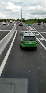 Arrive à fond alors que la chaussée passe à une voie, force le passage et se rabat à quelques centimètres alors qu'un bus arrive en face. Un bel enculé, VTC. La prochaine fois, je te tape dedans et avec les images tu l'auras bien profond...
