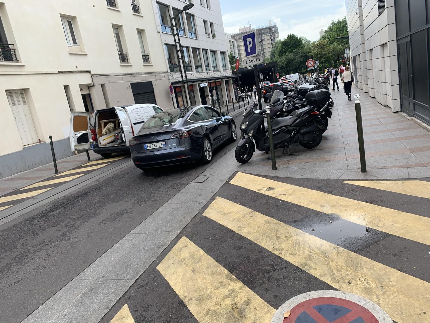 A failli m’écraser alors que je m’apprêtais à passer sur un passage piéton, jeudi 17 juin 2021 à Levallois. M’a insulté quand je lui ai rappelé que les piétons sont prioritaires. Puis à grillé un feu rouge. Le code de la route est le même pour tout le monde, y compris pour ceux qui roulent en Tesla. Auraient-ils des neurones en moins ?!