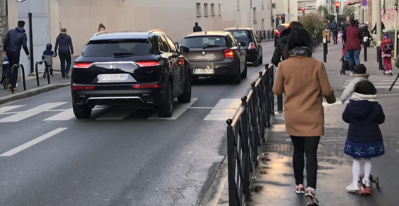 Sur la photo, il finit de se rabattre au niveau du passage piéton.