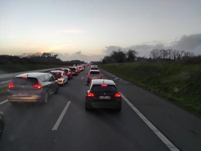 Peugeot 308 bleu nuit, immatriculé dans le 49 mais aperçu sur la RN165 à hauteur de Vannes.