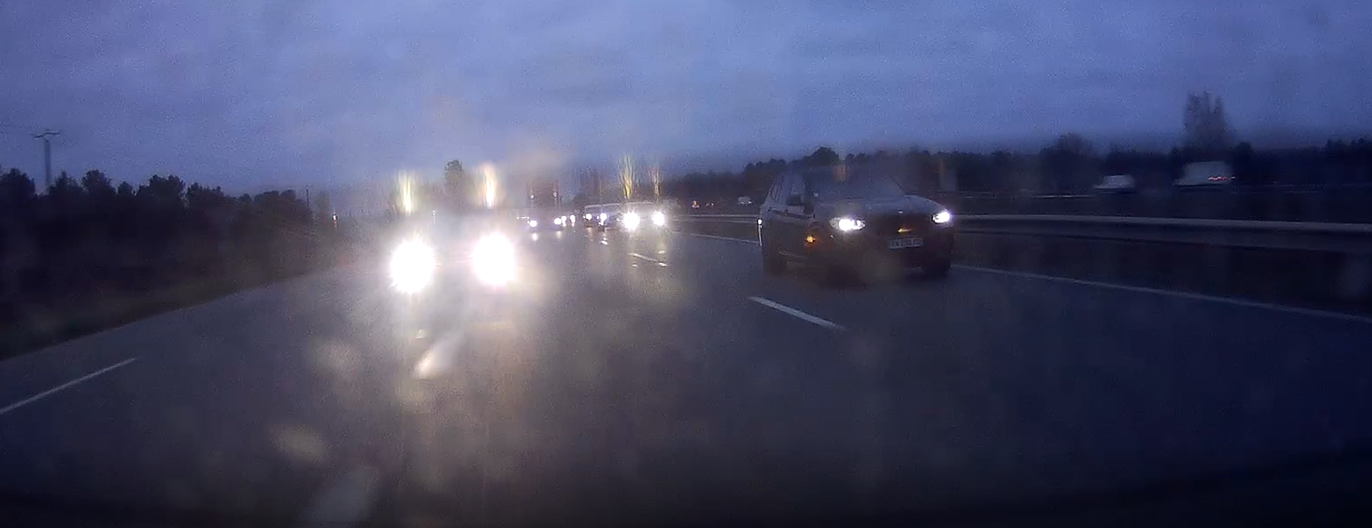 Le conducteur de la Clio 5 ne respecte pas ses distance de sécurité colle extrêmement le véhicule on ne voit pas sa plaque d’immatriculation, ni la limitation de vitesse vraiment dangereux