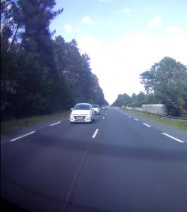 A déporté sur la semi bande d'arrêt d'urgence pour doubler, alors qu'il n'y avait pas la place, a failli rentrer dans 2 voitures pour forcer le passage