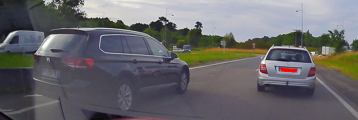 Roule à 150km sur des routes limitées à 90, colle les voitures devant lui et fait des appels de phares, signes de la main lorsqu'il ne peut pas doubler. Baisse sa vitre pour insulter, menace de s'arrêter, etc