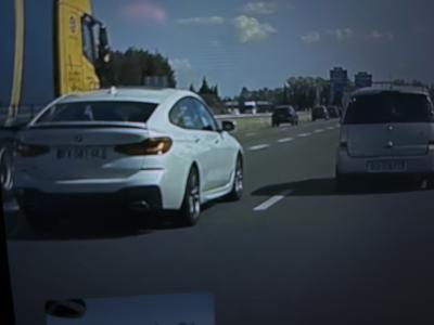 Conduite et comportement extrêmement dangereux : vitesse excessive (+120 km/h au lieu de 90), colle dangereusement les autres voitures, roule au milieu des voies.