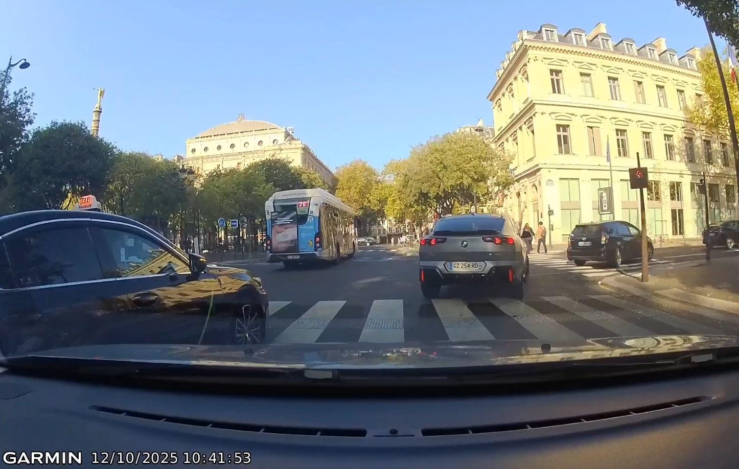 et passe devant la gendarmerie sur la voie de gauche tout en doublant tout le monde