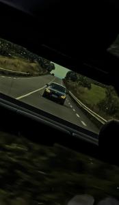 Jeune con kéké en bmv, ligne d’échappement sur mesure fixé à la manouche. Zigzag sur une ligne droite car il se retourne pour regarder ses jantes « concave » en sortant sa tête de la fenêtre.