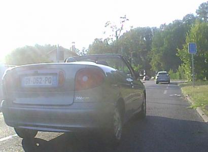 Dans le chemin des fours à chaux à NARBONNE, arrive comme une balle derrière moi (route limitée à 50 km/h avec plusieurs tronçons avec ralentisseurs, limités à 30 km).